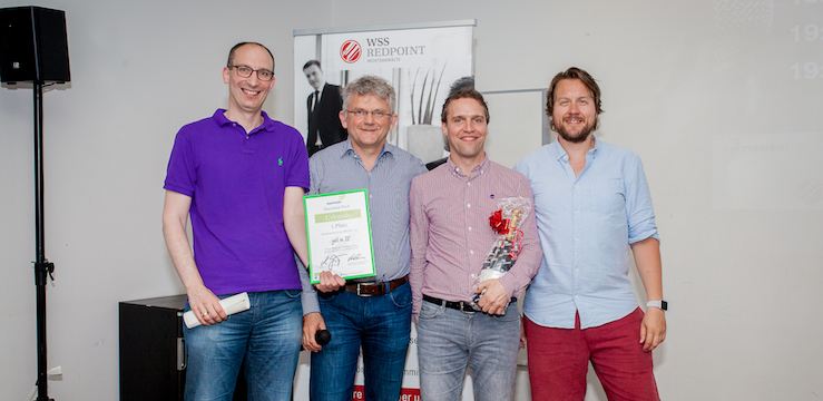Auch Rausgegangen zeigte einen spannenden Pitch und landete nur ganz knapp hinter Taxbutler auf Platz 3. Insgesamt waren alle Pitches von einem sehr hohen Niveau geprägt und auch diesmal lagen die drei Teams nur minimal voneinander entfernt.